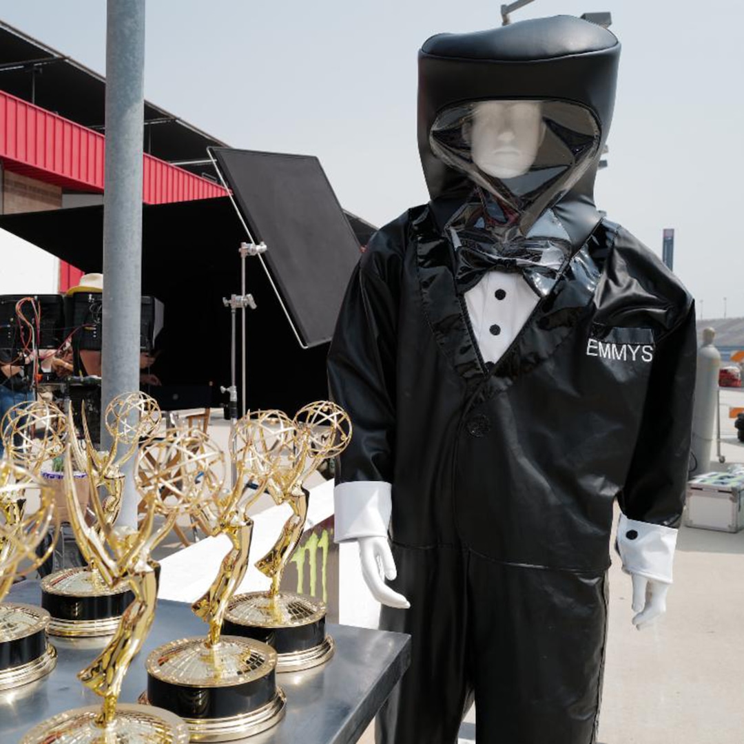 Earlier this week, ABC had posted photos of their "dapper, hazmat-suited trophy presenter" which appears to be a person in a hazmat suit with a tuxedo on top, and many of us believed it to be a joke. "They're not really gonna use those, obviously," we said. We were delightfully wrong!