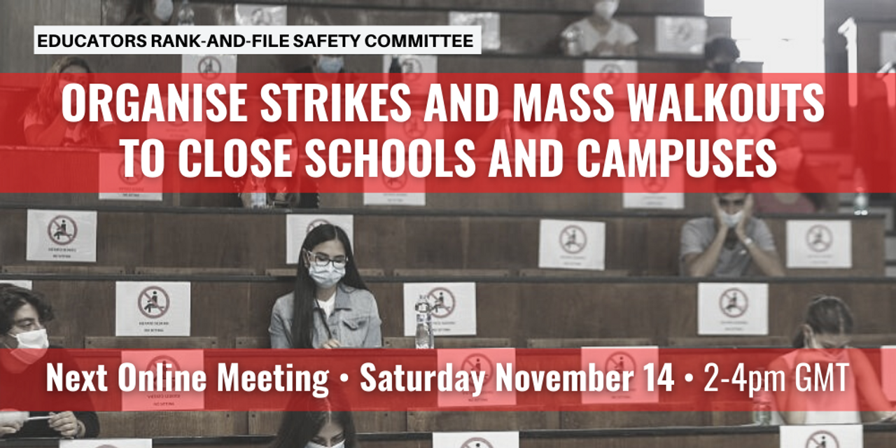 We call on teachers, parents and students to join the Educators Rank-and-File Safety Committee established by the Socialist Equality Party today and make plans to attend our next online meeting on Saturday November 14 at 2pm.