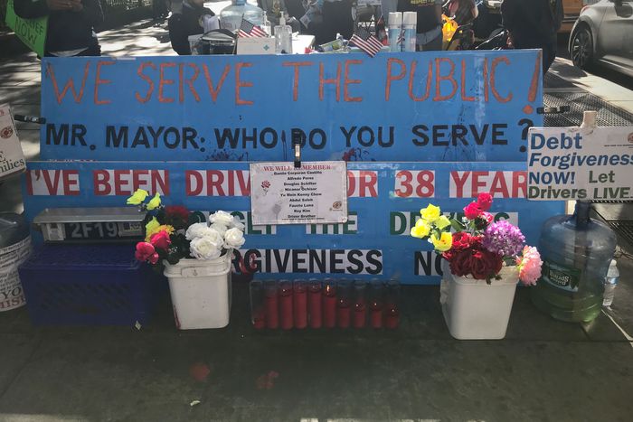 In 2006, when Richard Chow bought his taxi medallion from the city for $410,000, it seemed like a great idea. The value of medallions was rising steadily and the Taxi and Limousine Commission was touting them as good long-term investments, so he took out a $358,200 loan. Then came the disruption — Uber, Lyft — and a collapse in the market in 2014. Chow, like thousands of other predominantly immigrant drivers, was left with a medallion he could only resell for perhaps a quarter of its former value, $389,000 in debt, and no hope of retiring. His case isn’t even the worst; the average medallion debt is now $500,000, according to the New York Taxi Workers Alliance, and the ongoing crisis has led nine of its members to take their own lives — including Chow’s brother, Kenny, who died by suicide in 2018. It was the loss of his brother that led him to join at least 10 other drivers in a hunger strike that started yesterday outside City Hall. Drivers have already been protesting there for more than a month to push de Blasio to overhaul the city’s rescue plan for drivers before he leaves office. Now Chow and the others say they will not eat or leave their sidewalk post until de Blasio agrees to two demands: that the city become the guarantor for all medallion debt and set lower monthly payments to lenders.
