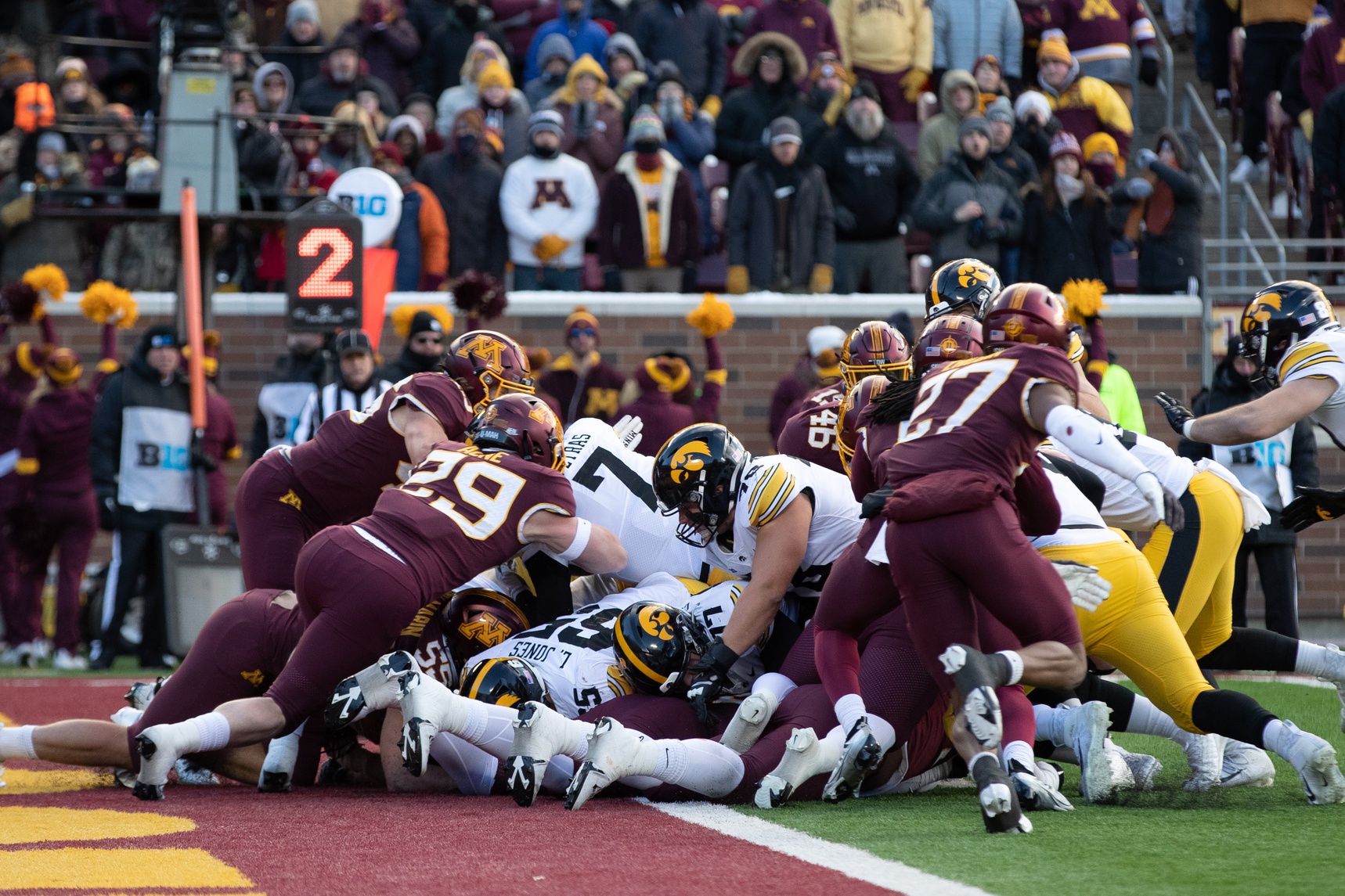 Tied 10-10 with about five minutes left in the fourth quarter, Mohamed Ibrahim lost a fumble inside Iowa's 10-yard line. After forcing a punt to get the ball back, still tied 10-10, with four minutes to go, the Gophers moved to the Iowa 33-yard line before Athan Kaliakmanis's pass was tipped and intercepted.