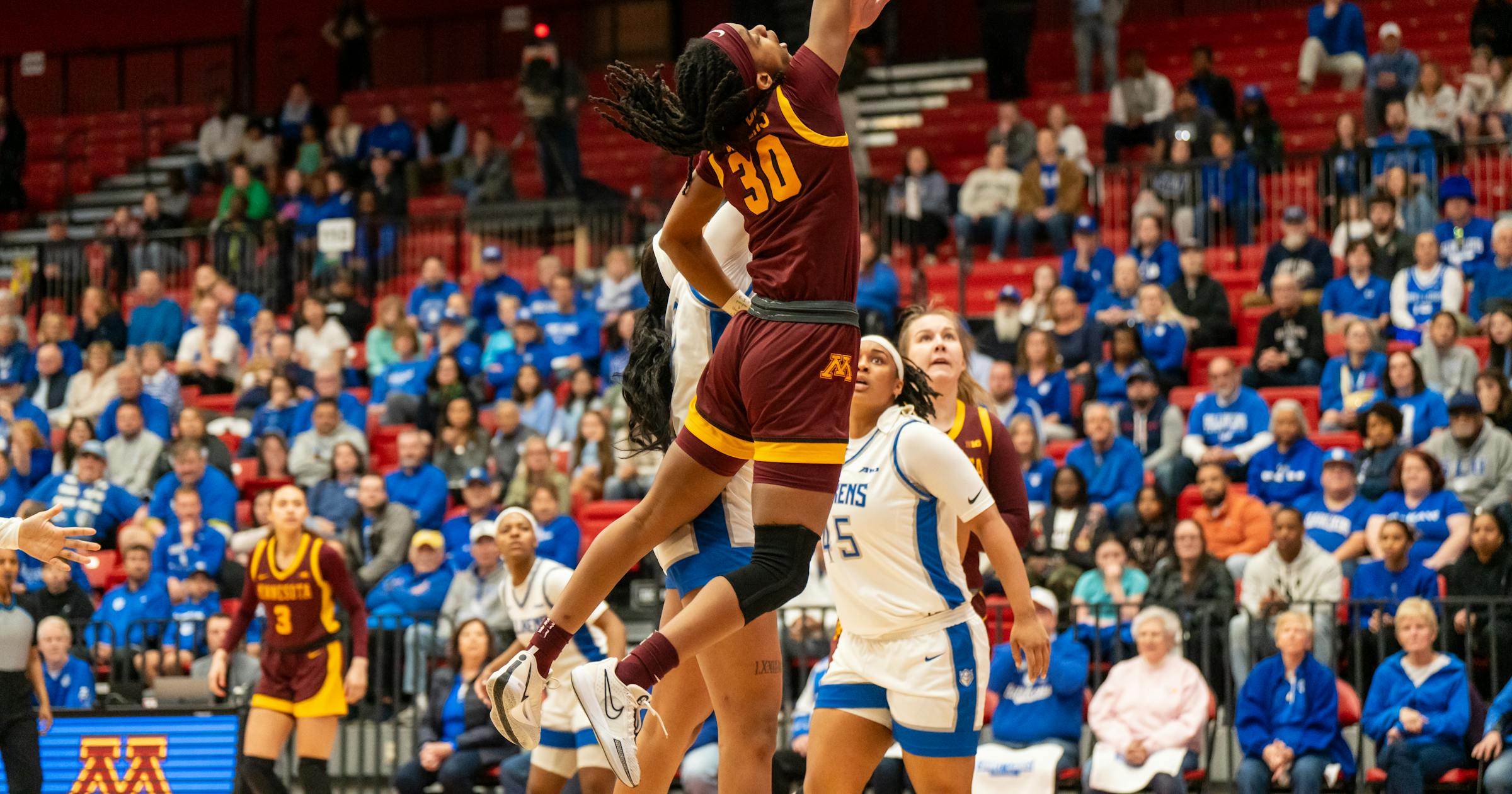The Gophers got 13 points and seven rebounds from Sophie Hart. Mallory Heyer had 11 points and 11 rebounds, her seventh double-double. Janay Sanders scored 12.